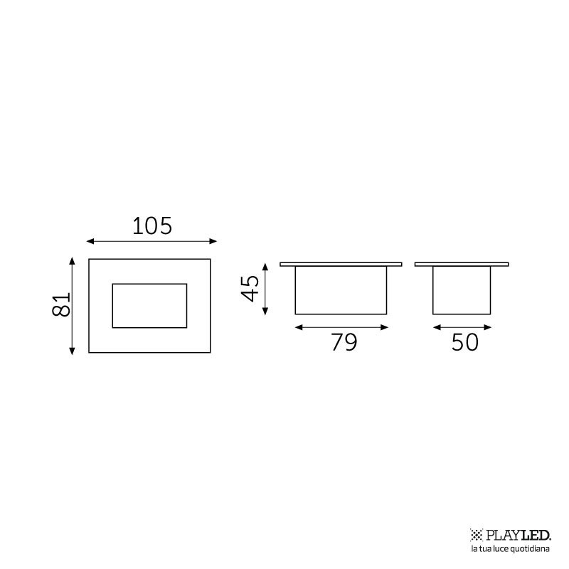 Caratteristiche tecniche: INCASSO EMERGENZA IP67 PER SCATOLA 503 O CARTONGESSO - GRADO DI PROTEZIONE IP67 - FORO 81x51 mm - DIMENSIONE SCHERMO 105x81 mm - DIMENSIONE CORPO 79x50x45 mm - ANGOLO FASCIO DI LUCE FISSO 120° - TIPO LED SAMSUNG SMD - CORPO LEGA EN AW 6063 PASSIVATA (ALLUMINIO-MAGNESIO-SILICIO) - SCHERMO VETRO TEMPERATO OPALE - CAVO 20 cm 3x0,75 NEOPRENE - CLASSE A+ - AUTONOMIA IN EMERGENZA 90 MINITI - FUNZIONAMENTO 60% DI LUMINOSITÀ, AUTONOMIA 1 H - BATTERIA LITIO.
